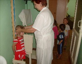 оснащен современным оборудованием: весы медицинские, ростомер, кушетки, шкаф для медикаментов, 2 холодильника, кондиционер, процедурный столик, столы для персонала, все необходимые медикаменты для оказания первичной медицинской помощи. |